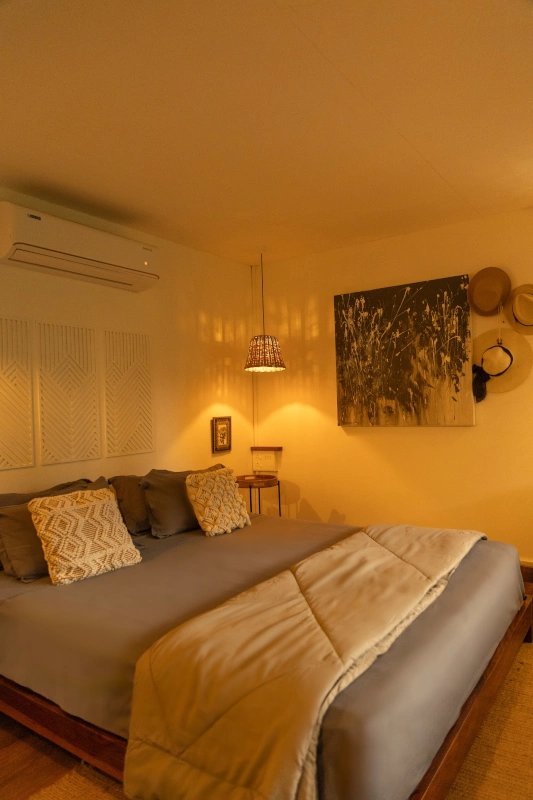 The suite provides views over the tranquil river and a lush tropical garden. Relax in the cosy double bed or enjoy a glass of wine on your private balcony and unwind. For 1 to 4 people.